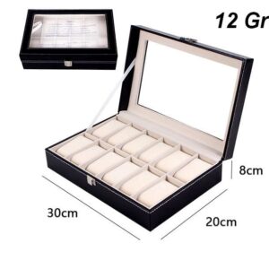 - Enhance the beauty of watches – with a transparent top, the gray lining that contrasts nicely with the black synthetic leather; Brightly shining mental closure, this is an impressive display and storage piece for your watch collection.