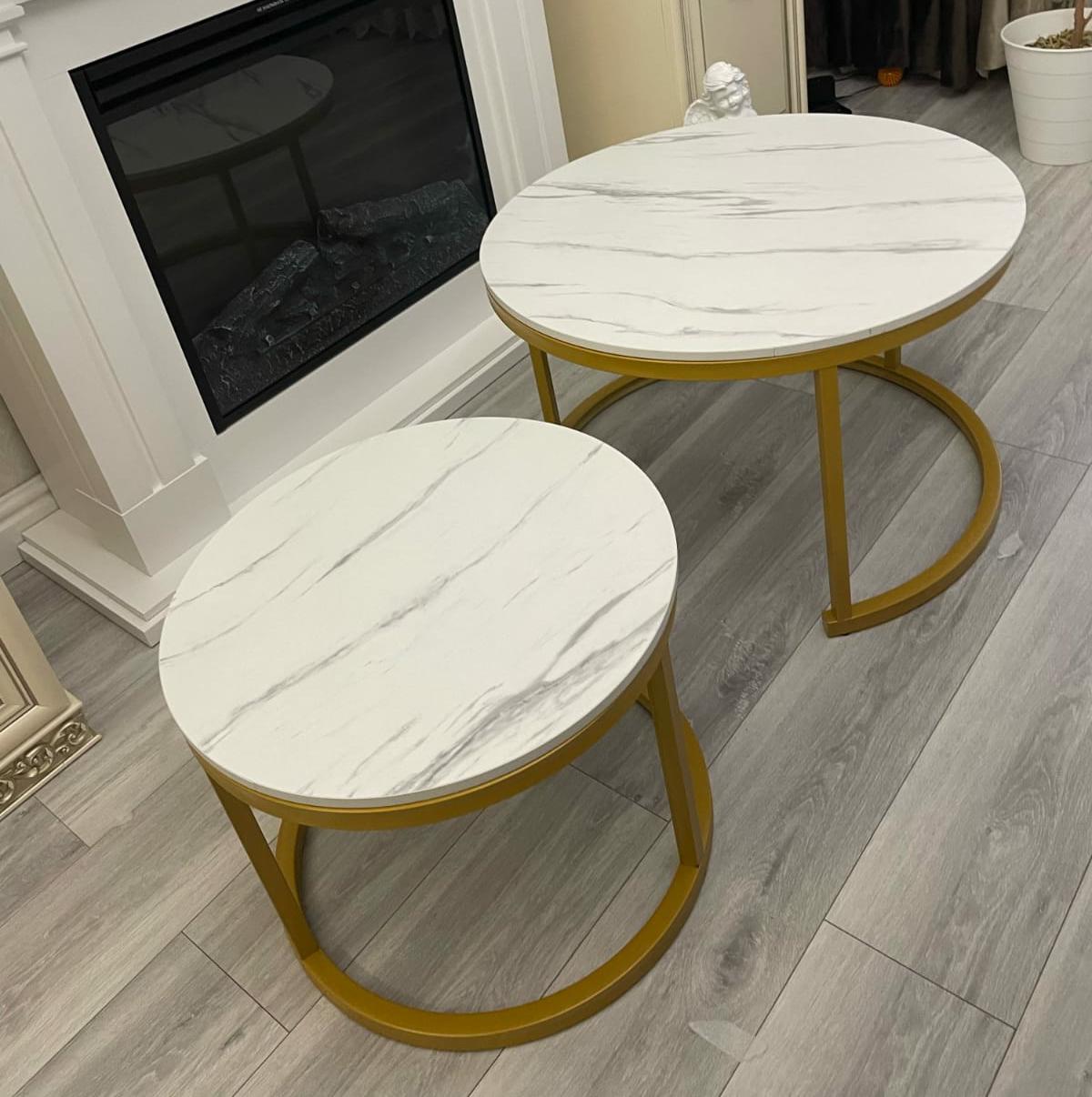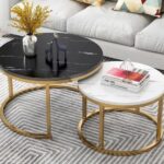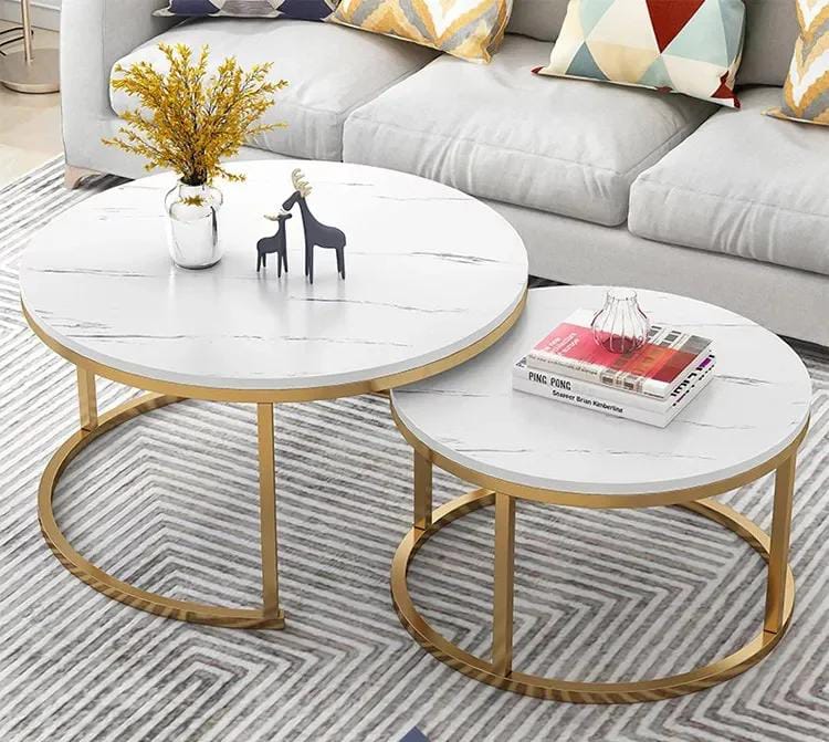 Round Coffee Table Set of 2 Stackable Sofa Side Tables with MDF Surface for Living Room Decor
