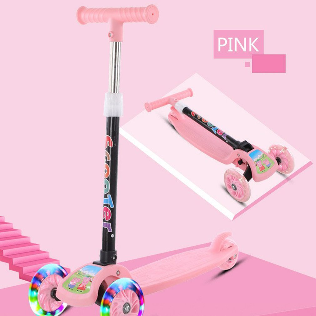3-Wheeled Scooter, Toddler Scooter Pedal for Girls and Boys, Adjustable Height Folding Kids Scooter with Flashing Wheels
