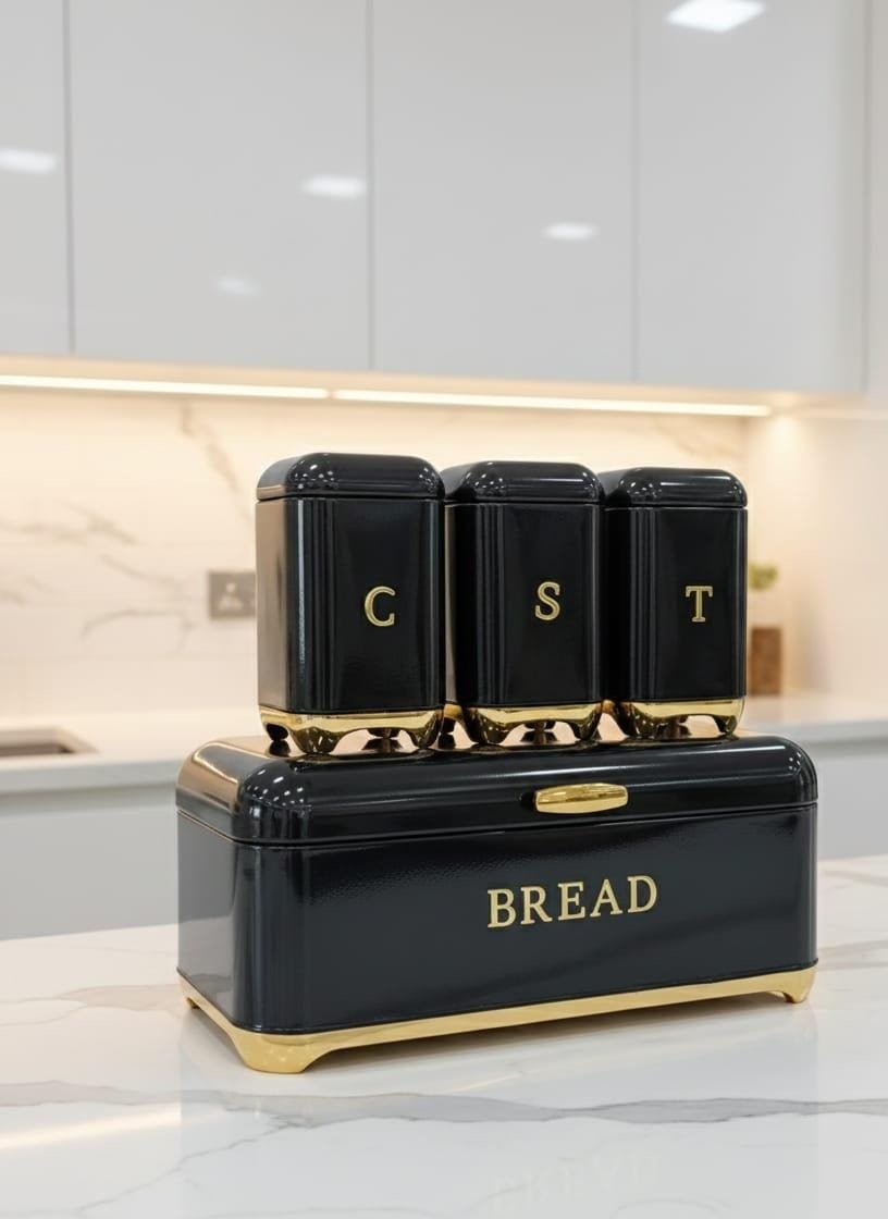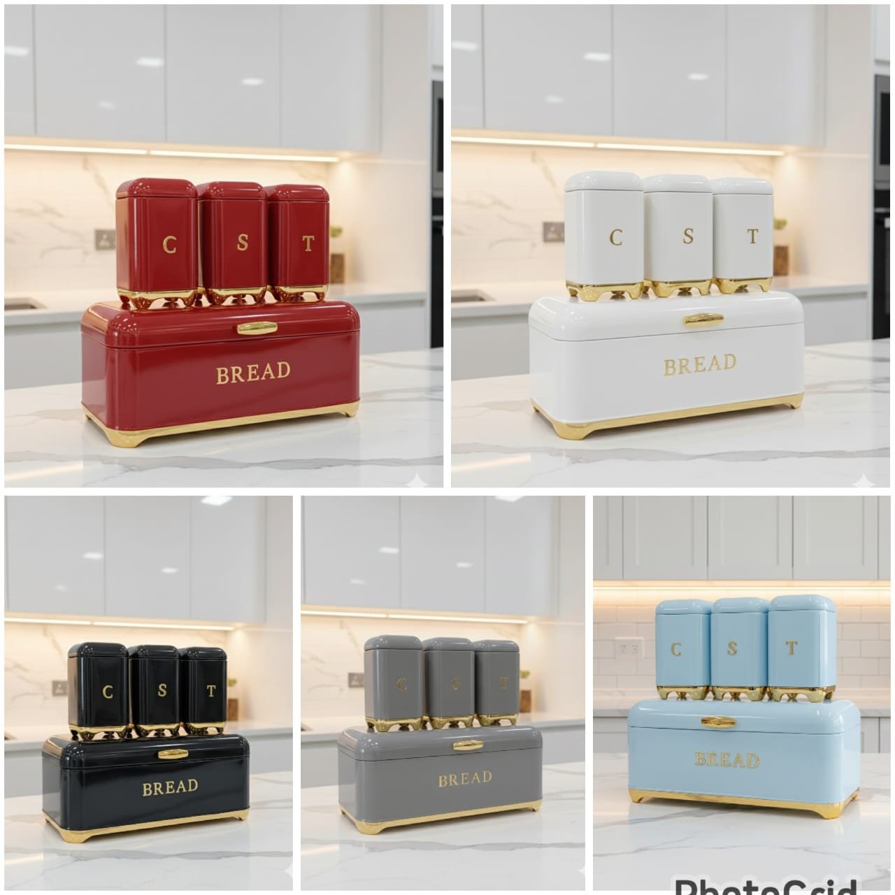 4 Piece Premium Bread Bin and Canister Set – Modern Kitchen Storage (CST)