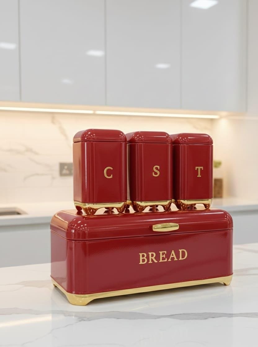 Upgrade your kitchen with this elegant 4 piece bread bin and canister set in Kenya, designed to combine style and functionality. This premium kitchen storage set includes one spacious bread bin and three matching canisters perfect for storing tea, coffee, and sugar.