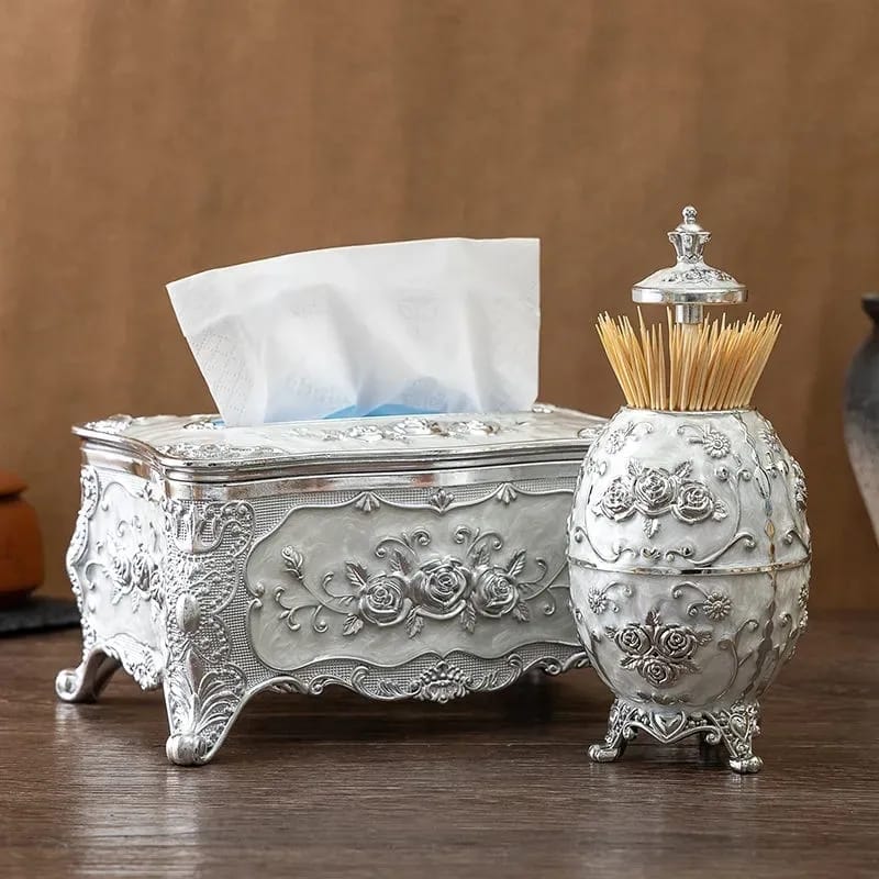 Home living room, office, tissue storage box, Toothpick box, European light luxury pressing toothpick container, tissue box set