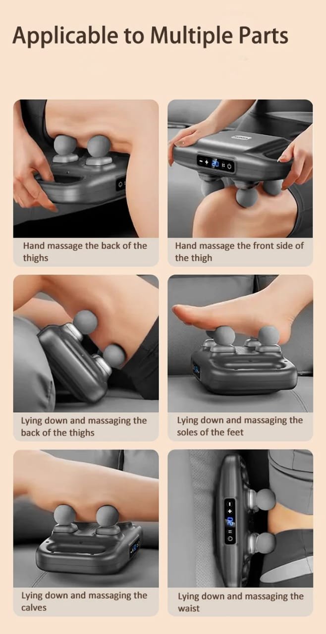 Relieve muscle tension and enjoy professional-grade massage therapy at home with our Four Head Fascia Massager Gun. Featuring four powerful massage heads and a 20KG strike force, this massage gun is designed for deep tissue relaxation, faster recovery, and pain relief.