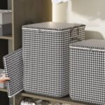Large Capacity 180L Grid Quilt Storage Bag Non-Woven Wardrobe Dust-Proof Clothes Closet Travel House-Moving Zipper Organizer Box