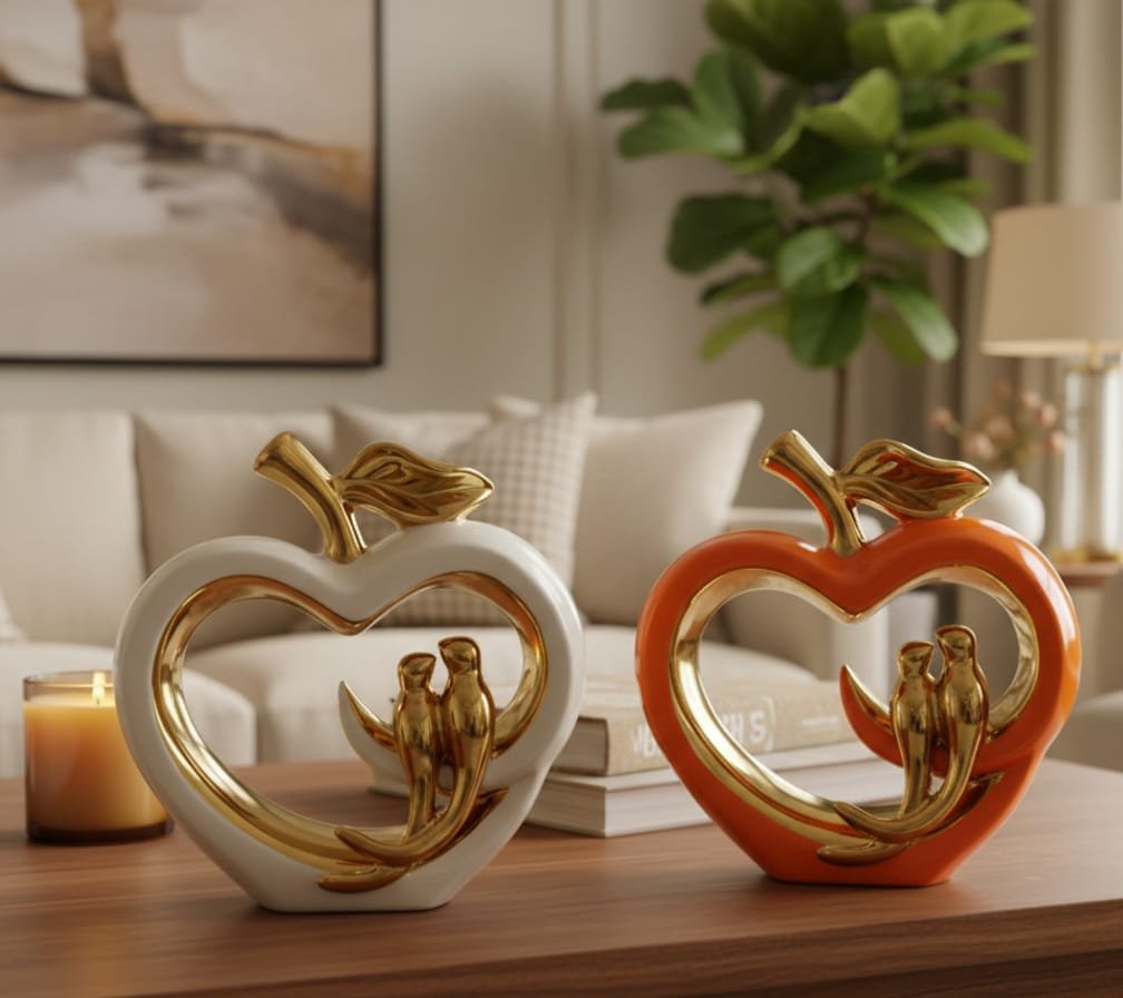 Bring elegance and romance into your home with this Golden Love Birds Heart Sculpture. Designed in a stunning heart-shaped frame with two golden love birds, this decorative piece symbolizes love, harmony, and togetherness. Perfect as a home décor accent, wedding gift, or anniversary present, this ceramic sculpture adds charm and sophistication to any space. Ideal for living rooms, bedrooms, offices, or as a centerpiece gift for loved ones.
